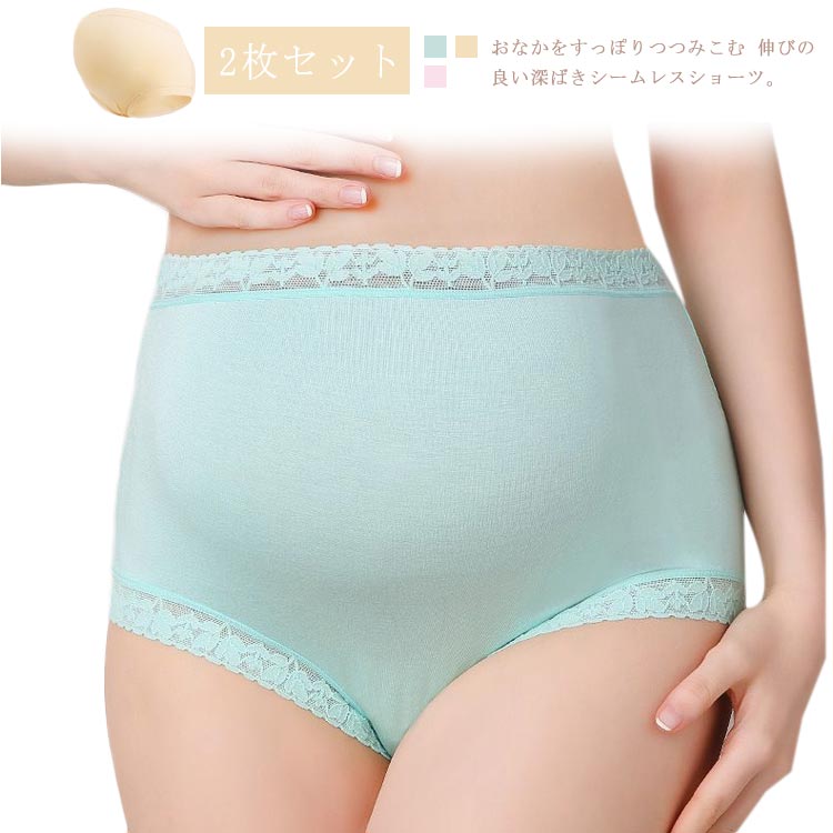 マタニティショーツ 通気性 ハイライズ 2枚セット シームレス 下着 妊婦ショーツ インナー 綿 肌着 マタニティ ショーツ ハイウエスト レース 無縫製 深ばき コットン パンツ マタニティショーツ
