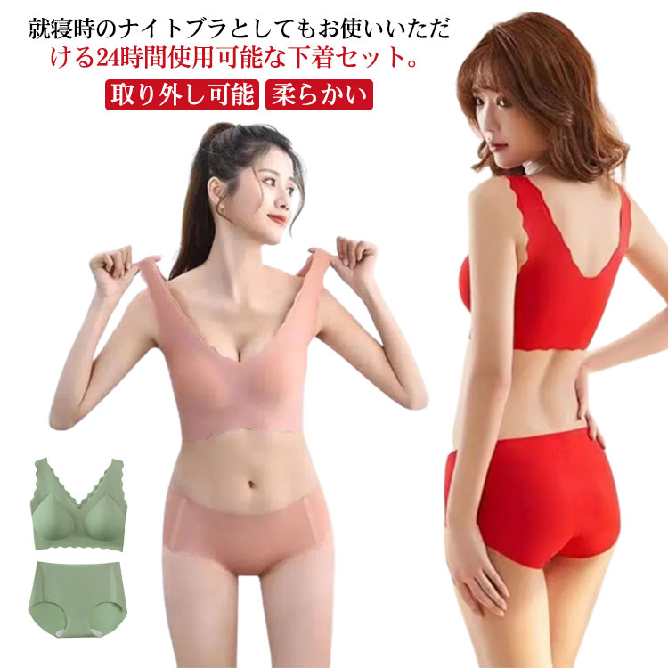 ブラ ショーツ カップ付き ショーツ付き ノンワイヤー セット パット付 ナイトブラ 柔らかい ノンワイヤーブラ ノンホック ブラジャー 取り外し可能 バストアップ シームレス セット