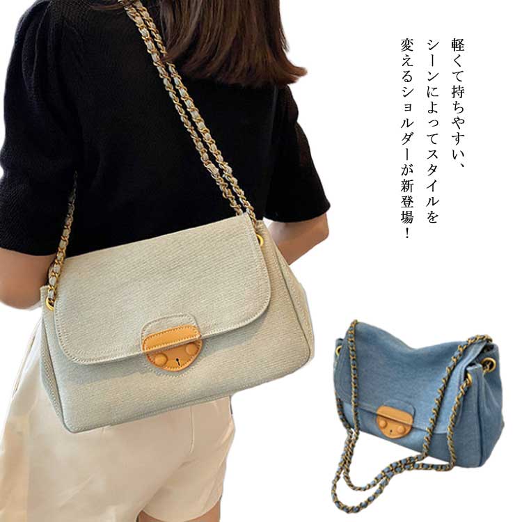 ショルダーバッグ 2way レディース 手提げ ハンドバッグ 肩掛け 斜め掛け デニム生地 シンプル 大容量 軽量 大人女性 おしゃれ フェミニン 通勤 通学 カジュアル