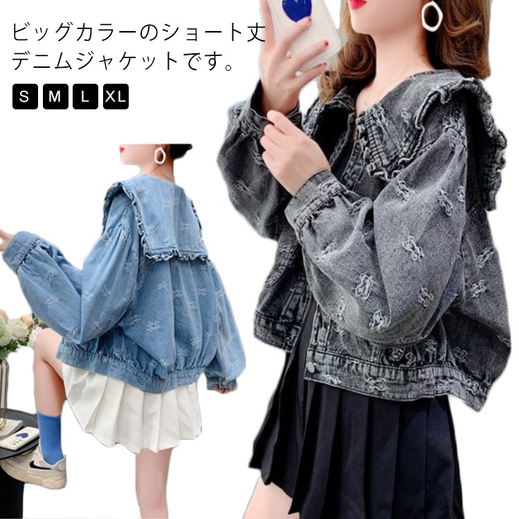 ビッグカラーボリュームスリーブ!デニムジャケット かわいい かわいい アウター ジャケット Gジャン 春秋 ライトアウター カジュアル デニムコート 長袖 フリル付き おしゃれ レディース