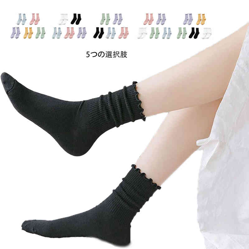 キッズ 靴下 ゆったり フリルソックス 5足セット おしゃれ靴下 春秋 子供ソックス クルーソックス カジュアル フリル かわいい スニーカーソックス ソックス シンプル 無地 女の子