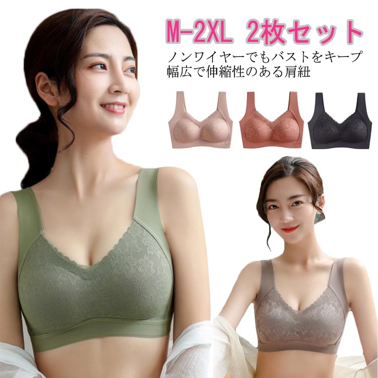 小さく見せるブラ 下着 ブラ ブラジャー 小さく見せるブラジャー 薄い 大きな胸を小さく見せるブラ 胸を小さく見せるブラジャー 総レース スマートブラ 薄い 着やせ 揺れない インナー 2枚セット!小