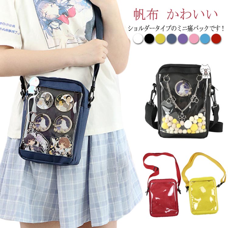 ショルダーバッグ 帆布 痛バック キャンバス 痛バッグ 缶バッジ 痛バ お財布ポシェット ポーチ ミニ 見せバッグ 小さめ ぬいぐるみ 痛バッグ クリアバッグ ライブ用 イベント用 黒 痛バッグ 白