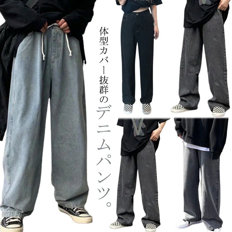 大きいサイズ デニム ジーンズ ボトムス ワイドパンツ ジーパン 3XL レトロ レディース 体型カバー 長ズボン ハイウエスト ゆったり Gパン 春 夏 秋 ストレートパンツ ストリート系 おしゃれ