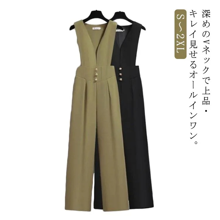 ノースリーブ パーディ レディース 入学式 ロンパース vネック マキシ丈 30代 サロペット 結婚式 二次会 体型カバー ロング丈 ゆったり 卒用式 オールインワン ワイドパンツ カジュア