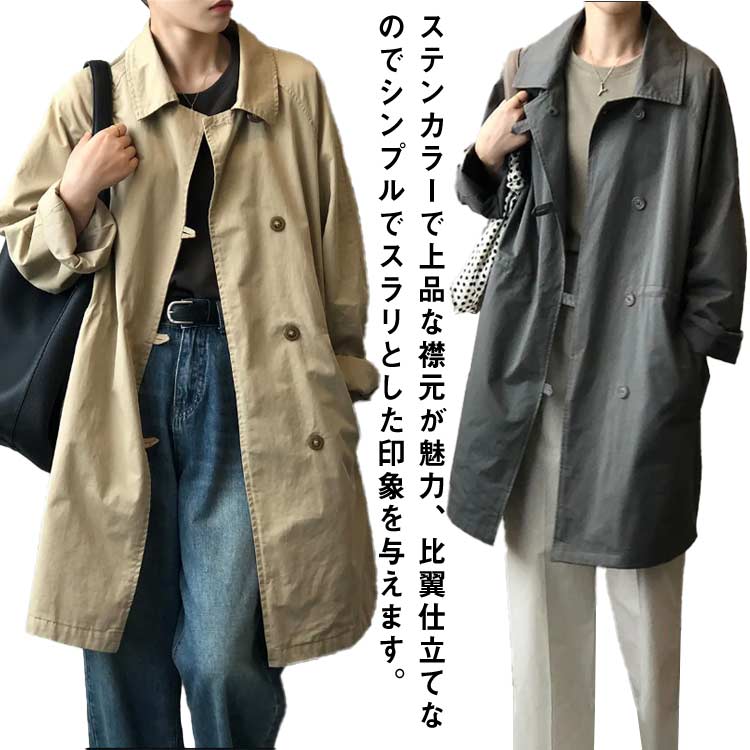 春 レディース トレンチコート ステンカラーコート 秋 コート 通学 ジャケット ロングコート カジュアル 通勤 アウター 薄手 スリム 細身 コート 大きいサイズ スプリングコート