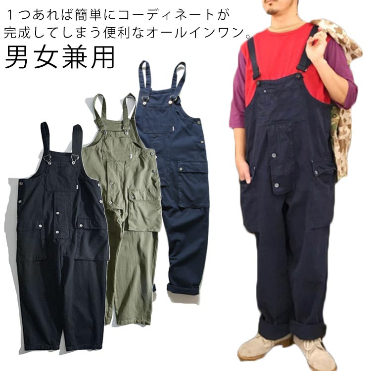 ブラック パンツ オーバーサイズ サロペット 薄手 オーバーオール つなぎ メンズ レディース ツイル生地 オールインワン サロペットパンツ 作業着 無地 レディース カーキ 黒 カジュアル ストリー