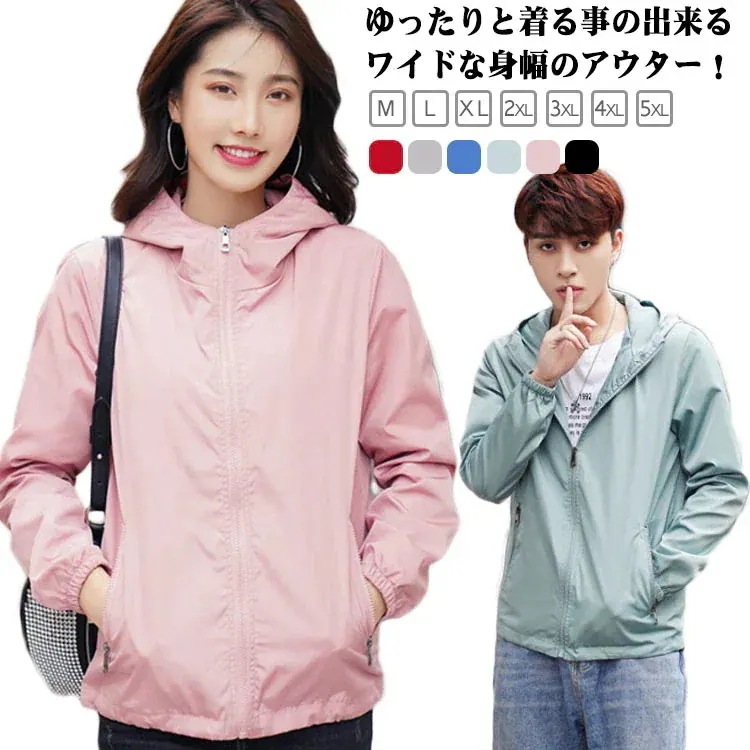 4XL ウインドブレーカー ジップアップ マウンテンパーカー 春 羽織り パーカー 軽量 ジャケット スポーツ カジュアル アウトドア XL 大きいサイズ 夏 uvカット ライトアウター レディース