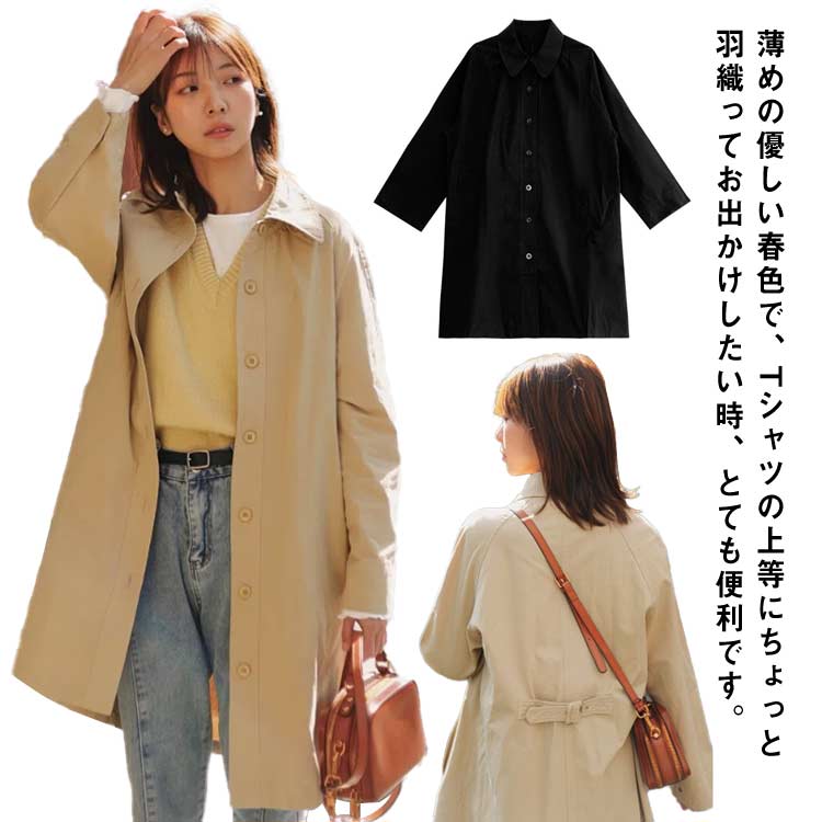 春 秋 ゆったり シンプル ロングコート 大人 ミドル丈 春コート 薄手 きちんと 女性 羽織り ステンカラーコート アウター 長袖 ライトアウター レディース ブラック 無地 おしゃれ 大きいサイズ