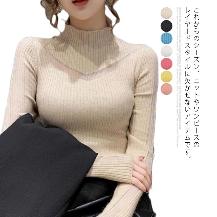 【】ニット レディース トップス カットソー セーター インナー 長袖 細身 リブニット ボトルネック ニットウエア 大きいサイズ リブ 春 秋 冬 プルオーバー オフィス 大人可愛い ストレ