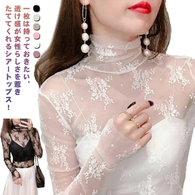 レース レイヤード 【】ハイネック トップス ハイネック レースインナー レースインナー ブラウス レディース 長袖 モックネック メロウ 重ね着 きれいめ 透け感 シアー シースルー 首のし