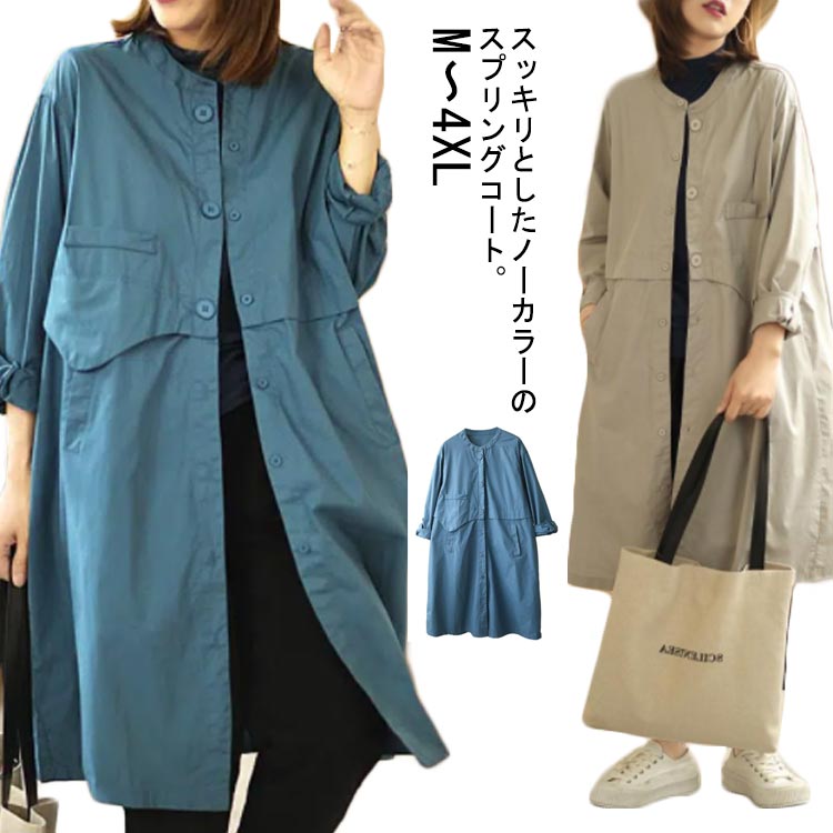アウター 羽織り 春 ロングコート トレンチコート ノーカラー トレンチコート きれいめ 冬 大きいサイズ 無地 ロング丈 ゆったり レディース 体型カバー 秋 おしゃれ 通勤 入園式 卒業式 デザイ