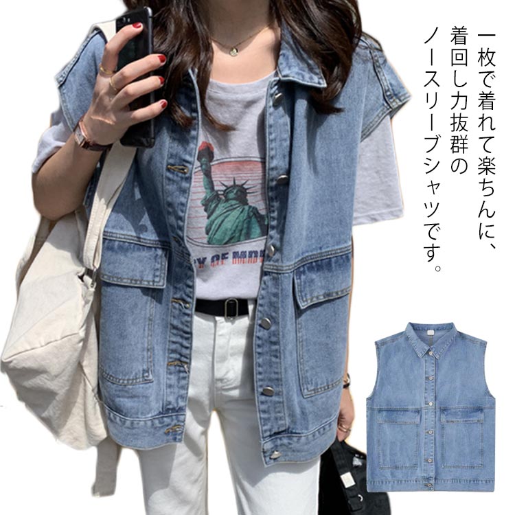 ノースリーブ ルーズシルエット 通学 レディース ジージャン 通勤 デニムベスト チョッキ アウター 春秋 オーバーサイズ カジュアル 大きいサイズ トップス