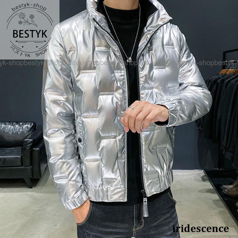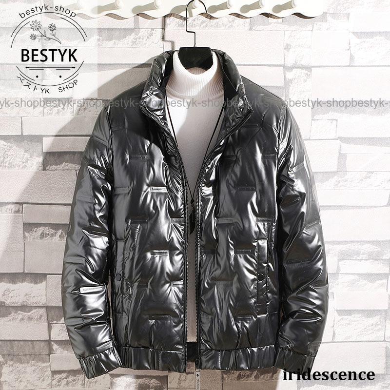 ダウン メンズ 中綿コート ジップアップ ツヤあり 軽量 あったかライトダウン フェザー コート おしゃれ アウター 防寒保温 秋冬 お洒落