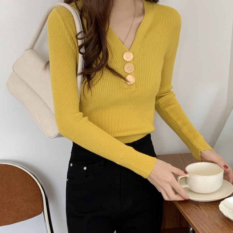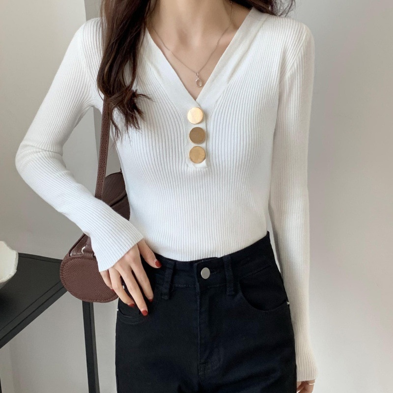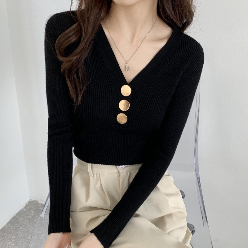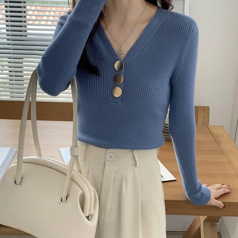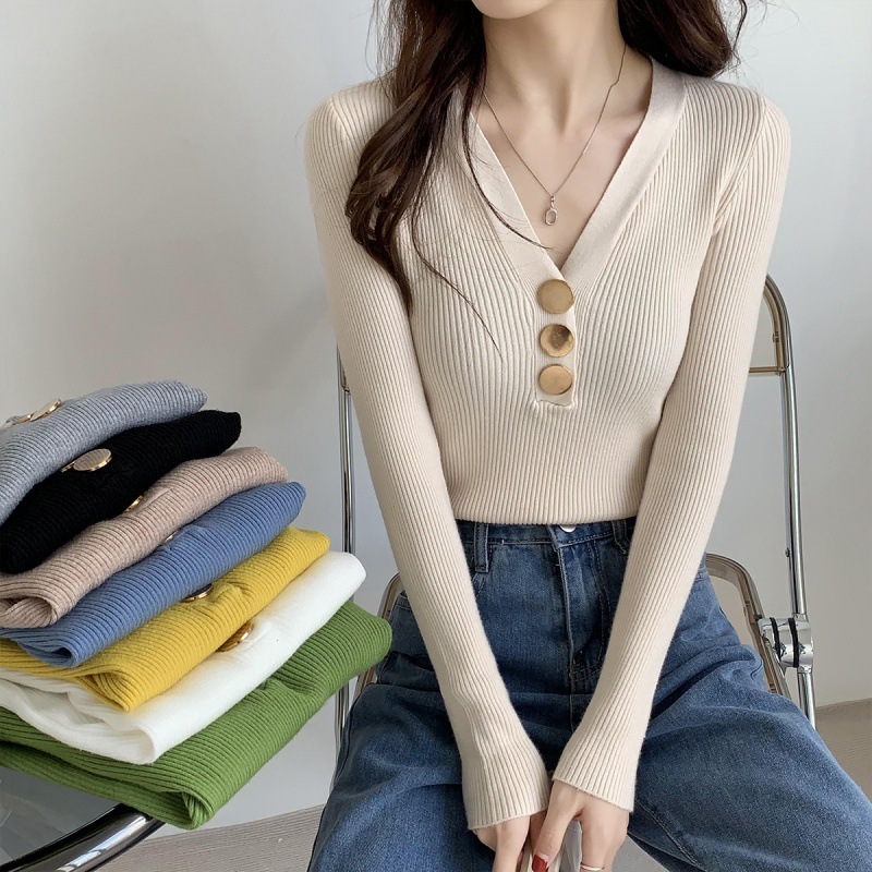 2025 春 夏 ニット トップス Vネック 長袖 インナー セーター 人気 レディース