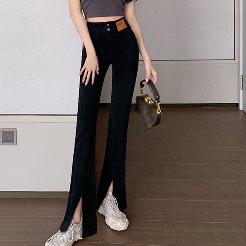 デニムパンツ レディース ジーンズ ハイウエスト デニムパンツ スリット韓国