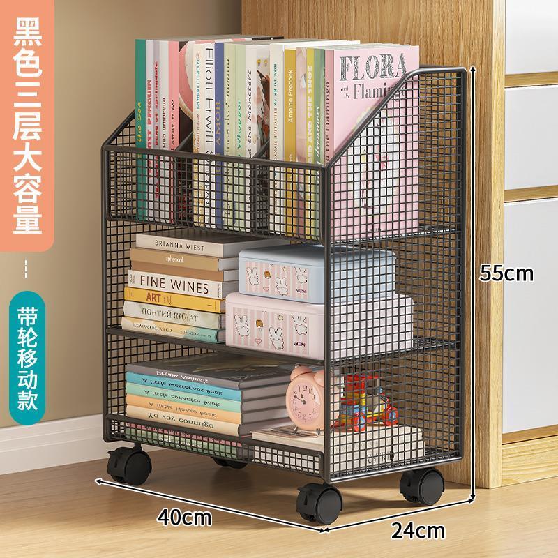 3日以内に出荷!!本棚取り外し可能なデスク下収納ラック床置き式本収納ラックトロリーテーブルサイドデスク学生本棚キャスター付き