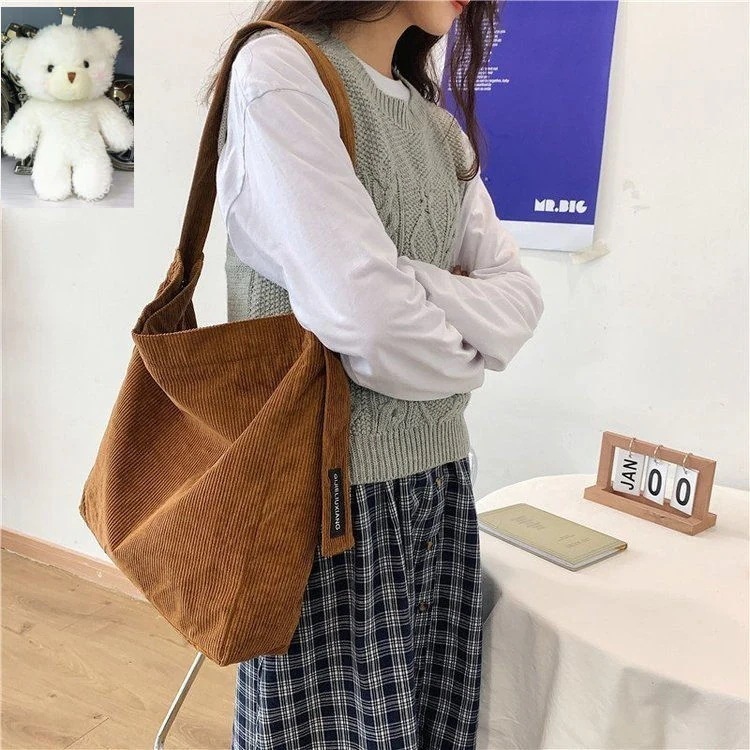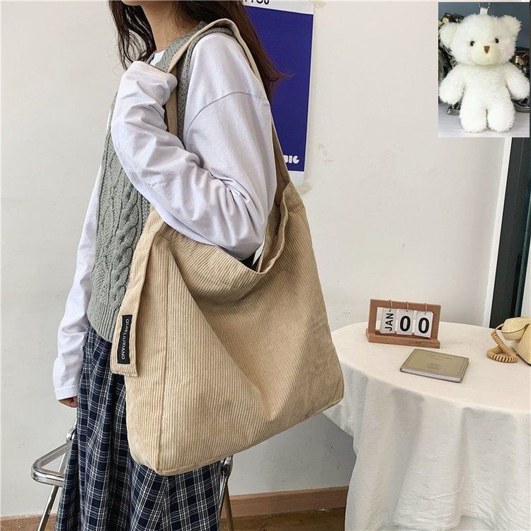 今すぐ欲しい!バックパック2023エコバッグズックバッグ【バッグ+くまちゃん】 コーデュロイ ショルダーバッグ 大容量 秋冬 使い方自由 斜め掛けバッグ 百掛け 学生 レトロ