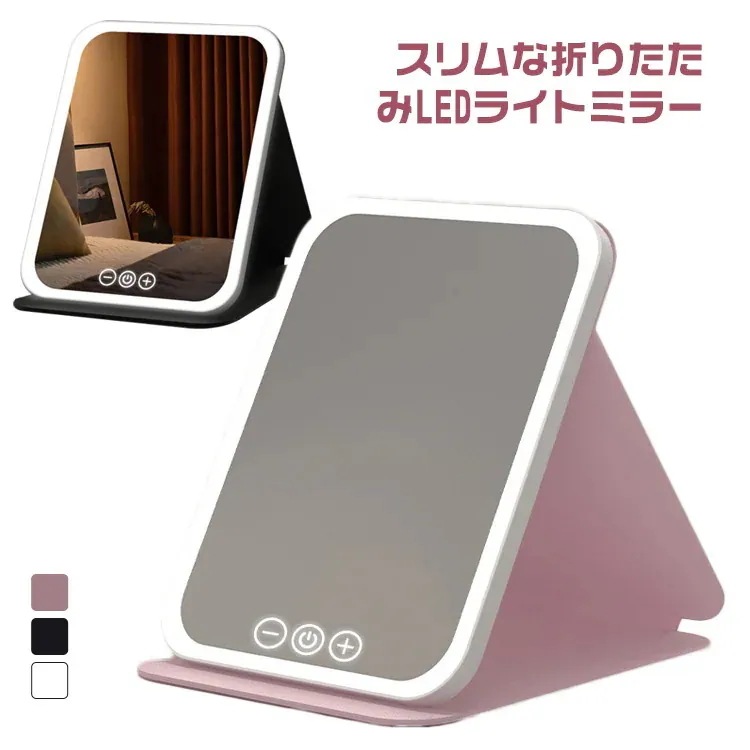女優ミラー 卓上鏡 卓上ミラー 化粧鏡 ライト付き 持ち運び 折りたたみ LEDライト スタンドミラー USB充電式 明るさ調節 メイクミラー タッチ操作 コンパクト クリスマス プレゼント 誕生日