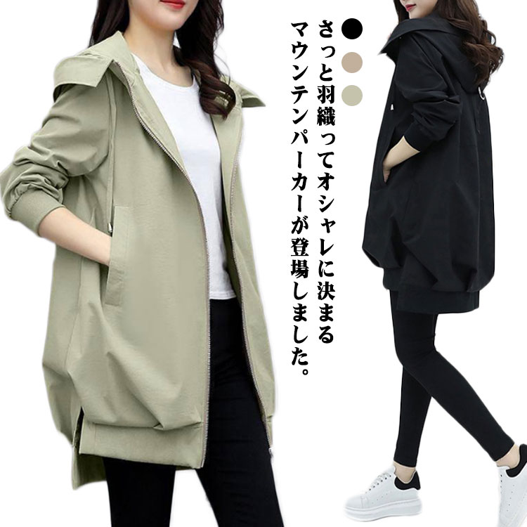 マウンテンパーカー ベージュ ブルゾン 裏地あり レディース ジャンパー ファスナー コート 羽織り フード付き 春 ジップアップ 体型カバー 秋服 春服 秋物 長め丈 アウター ゆったり カジュアル