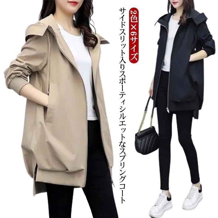 マウンテンパーカー 春服 秋服 レディース スプリングコート ライトアウター 薄手 裏地無し 春アウター 秋アウター 春秋 ジャケット アウター ブルゾン ロング パーカー フード ゆったり 大きいサ