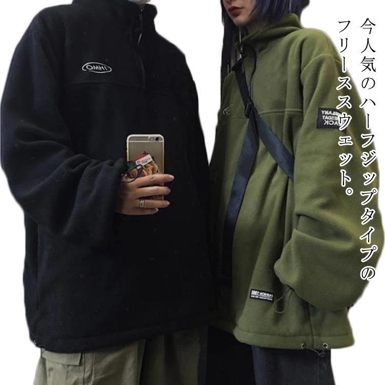 ボアフリース プルオーバー ハーフジップ スタンドカラー メンズ レディース スウェット パーカー ブルゾン 立ち襟 ゆったり 秋服 秋冬 厚手 オーバーサイズ 韓国風 あたっか 保温 防