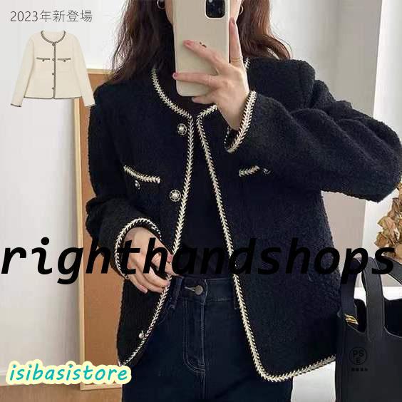 ツイードジャケット レディース 40代 長袖ノーカラージャケット 黒ショット丈ツイードコート 春コートアウター 秋服 大人韓国風 通勤OL 入学式 卒業式30代 50代