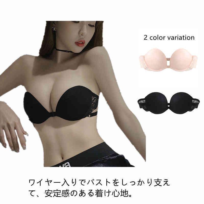 ストラップレスブラ 肩紐なし ずれ落ちない バッククロス ドレス用 ブラ 盛り ストラップレス ブラジャー 背中見せ 脇高 結婚式 無地 ブラック 夏