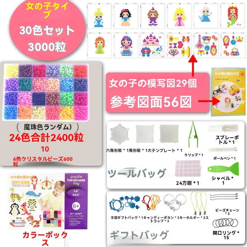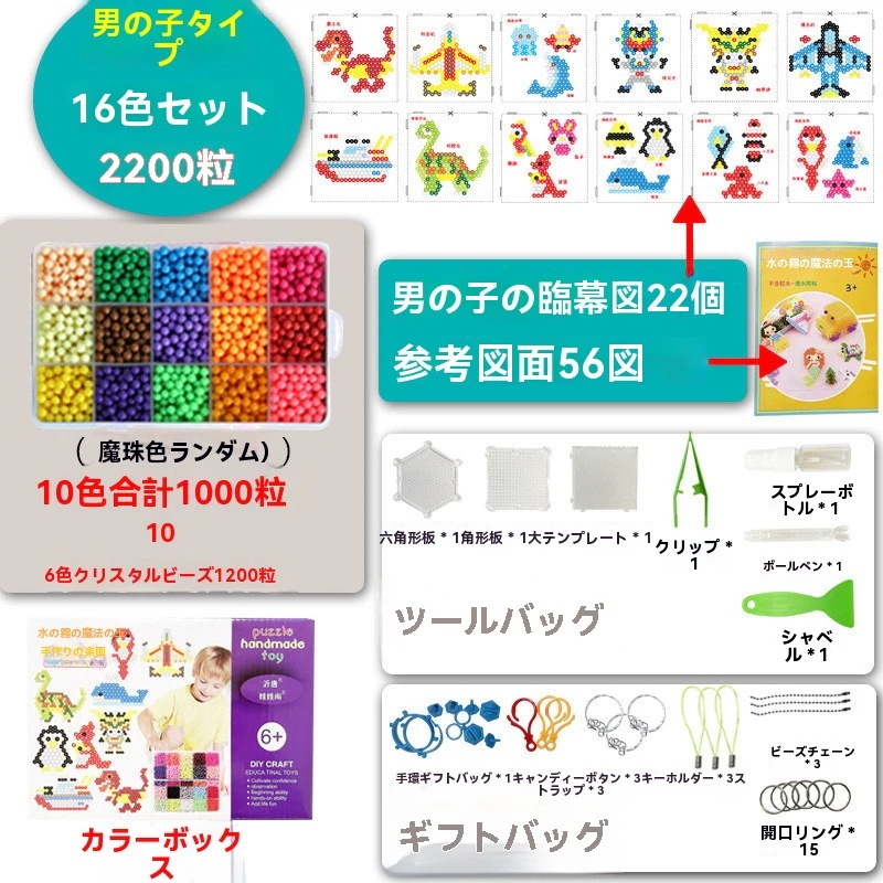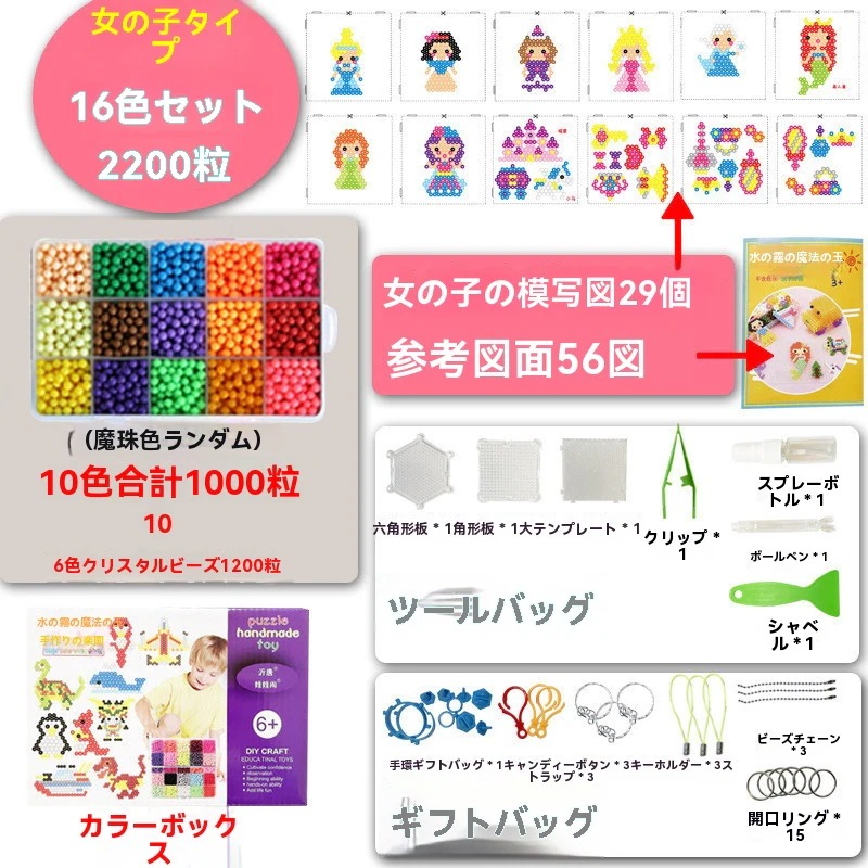 アイロンビーズ 5mm 48色セット 約2200個 大容量 図案付きブックプレートシートキーホルダーピンセット付属 初心者向け パ