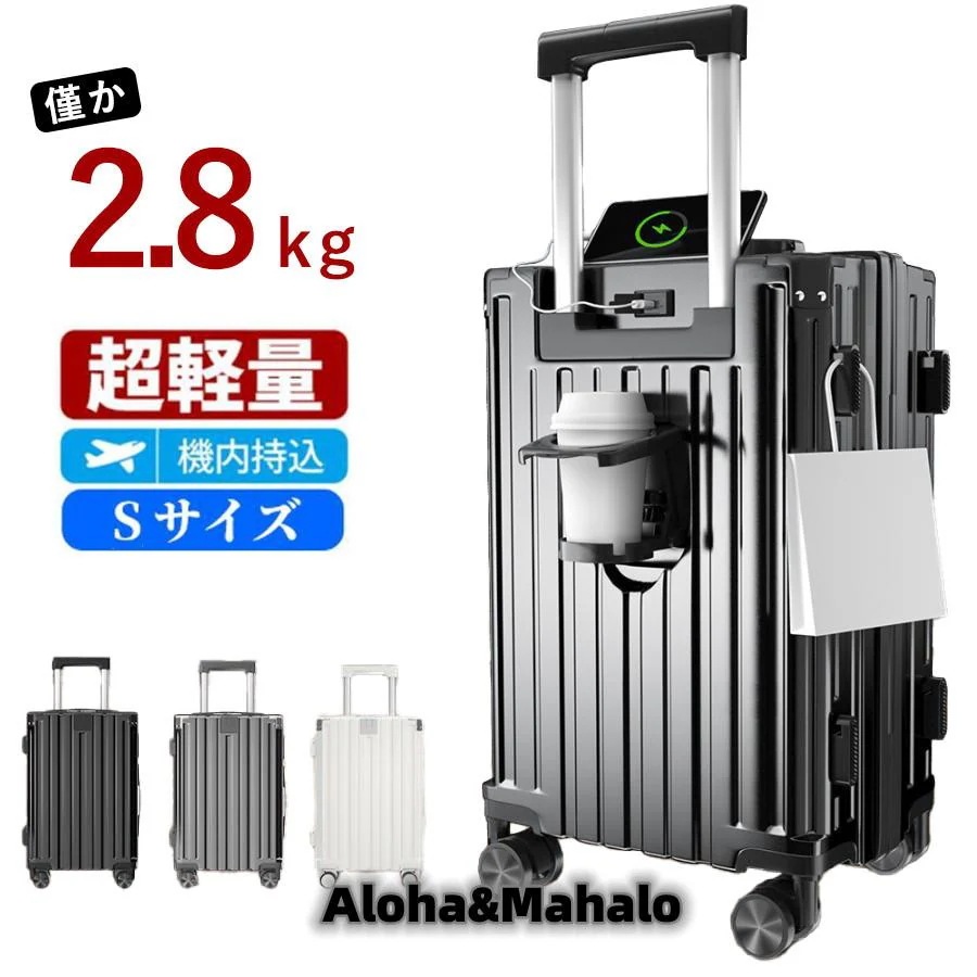 新入庫 超軽量 スーツケース 機内持ち込み Sサイズ 41L かわいい キャリーバッグ ファスナータイプ おしゃれ 大容量 ハードタイプ カップホルダー 多機能 静音 USBポー