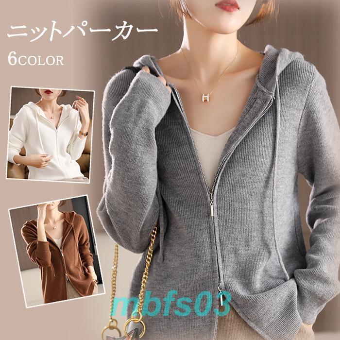 パーカー ニット ジップパーカー レディース ダブルジップ ニットパーカー トップス カーディガン 長袖 ライトアウター