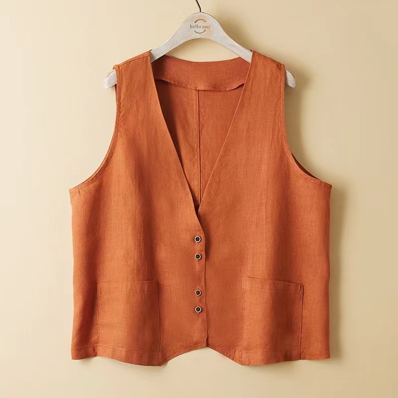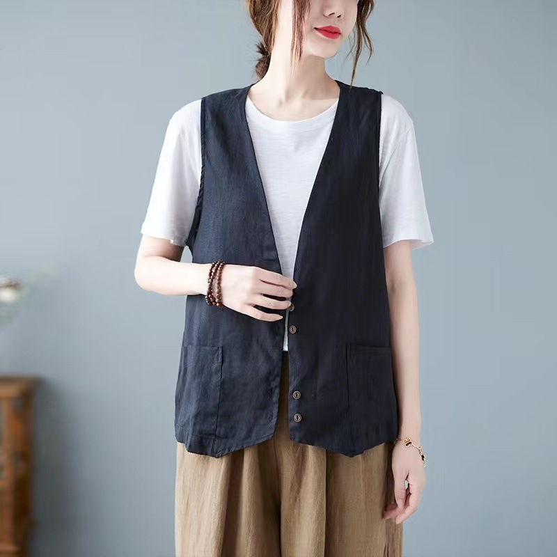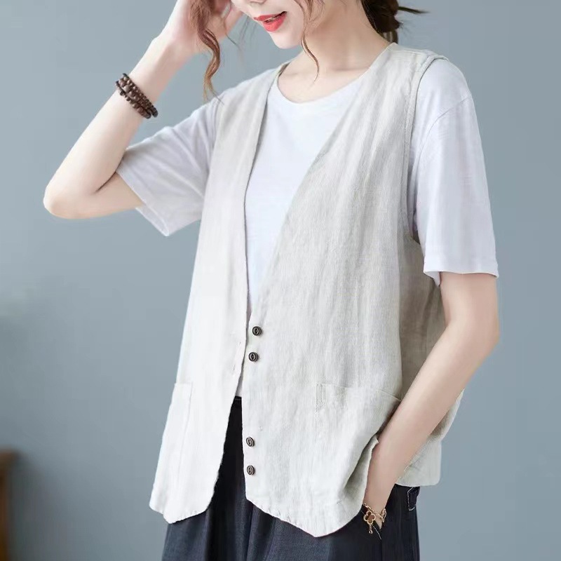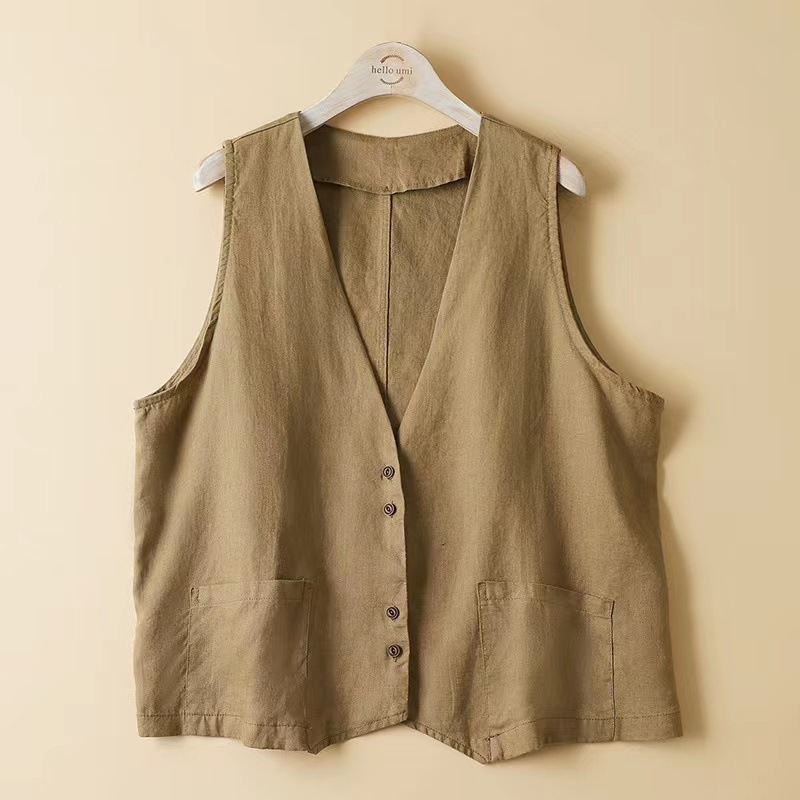 春夏服 レディース ベスト ノースリーブベスト 無地 綿とリネン ジャケット