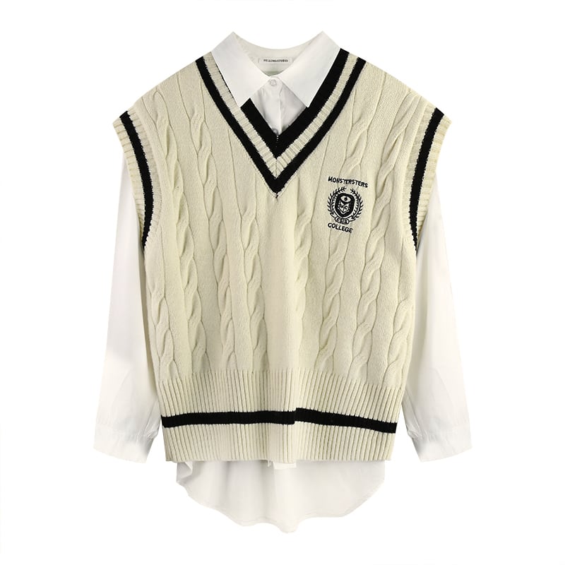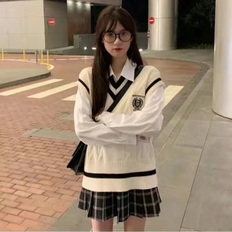 だぼカワ 2024 春夏 セットアップ ショート丈 トップス ベスト/シャツ/スカートの 学生 ニット スカート 高校生 制服