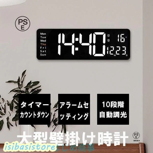時計 壁掛け時計 LED デジタル時計 壁掛け 卓上 大文字 大型 目覚まし時計 気温日付表示 アラーム カウントダウン カウントアップ ストップウォッチ