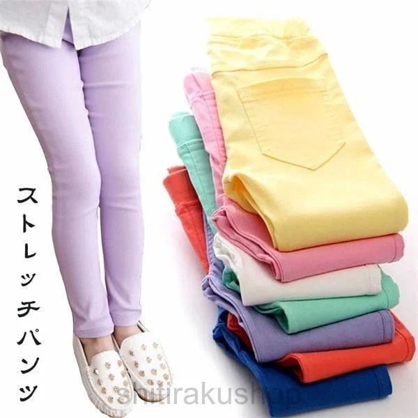 ストレッチパンツ キッズ パンツ キレイ系パステルカラー スキニー ズボン 伸縮性 伸びる かわいい シンプル ベビー ジュニア ダンス レギンス ストレートスリム