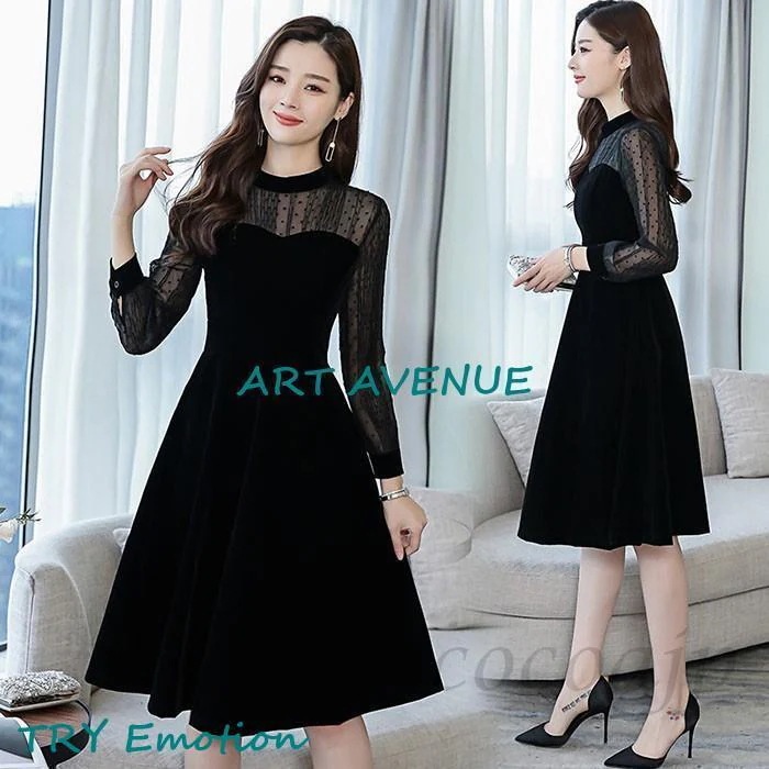 【目玉商品超人気】春ベルベット ワンピース ファッション結婚式 ベロア ワンピース パーティードレス 二次会 レース 膝丈 披露宴 お呼ばれ 大人 20代30代40代50代