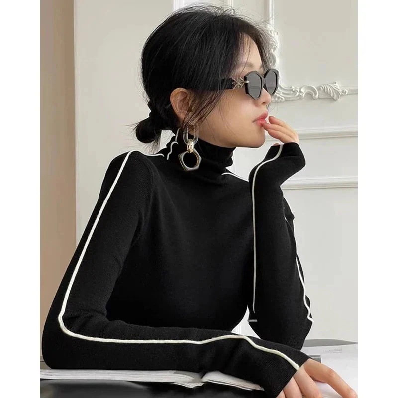 人気なリブニット 秋冬 ハイネック ニットアンダーウェア スリミング 百掛け タートルネック 韓国ファッション 高級感 長袖トップス/秋冬 重ね着 インナー 百掛け Tシャツ セーター レディース