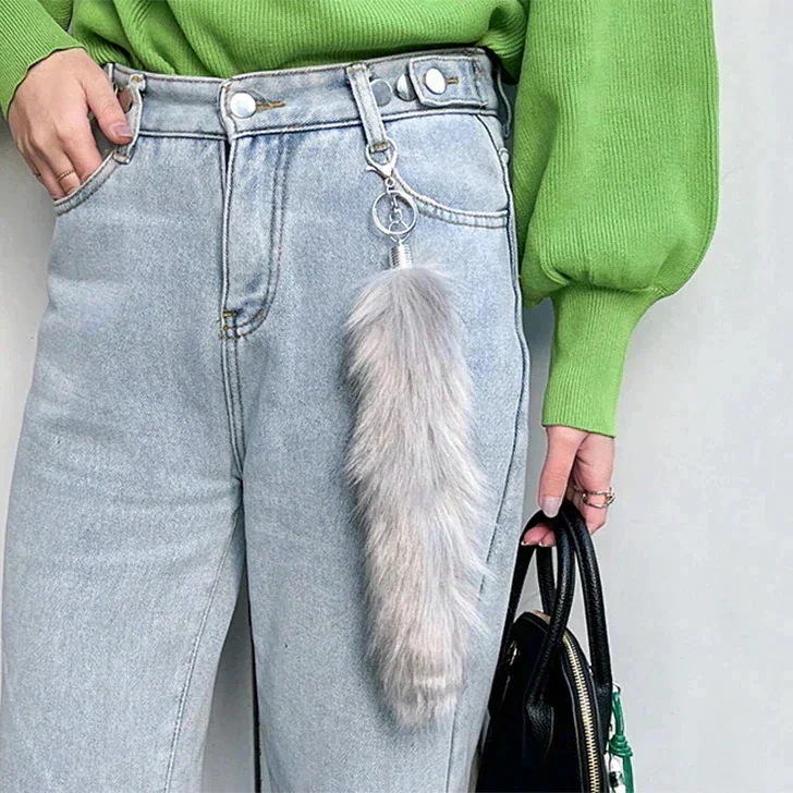 リアル スタイルフェイクファー しっぽ チャーム キーホルダー レディース メンズ 尻尾 ファーチャーム ファーストラップ 巨大 40cm バッグチャーム アクセサリー ファー スマホ