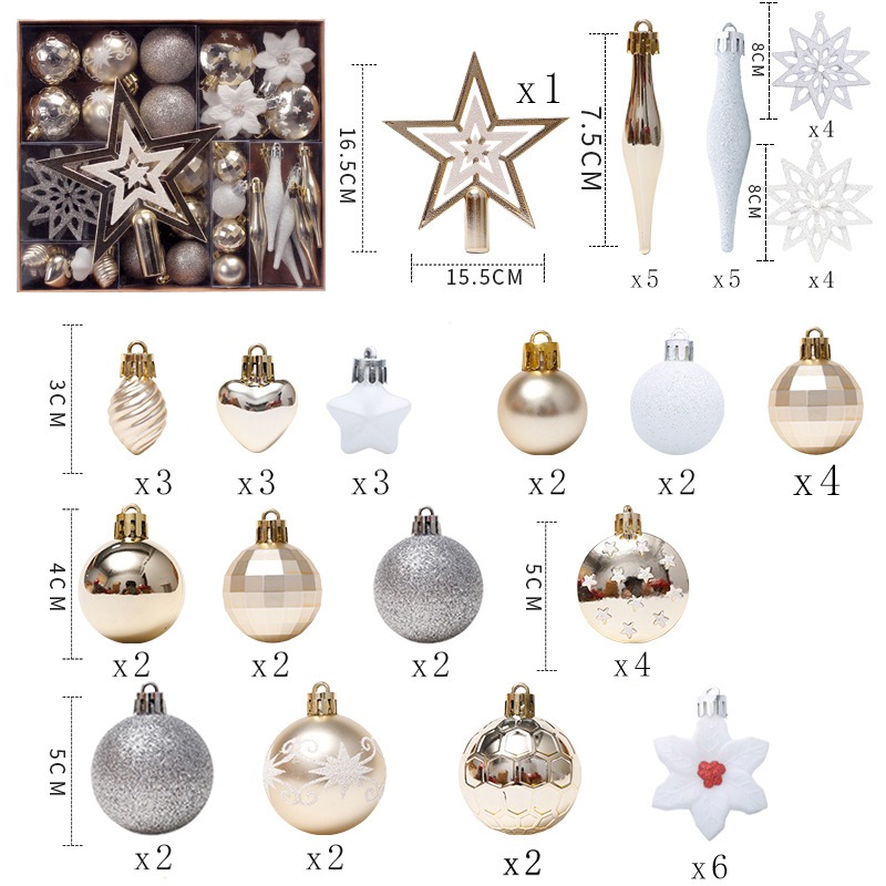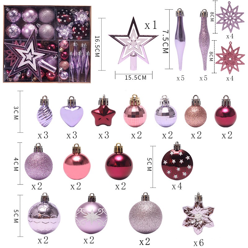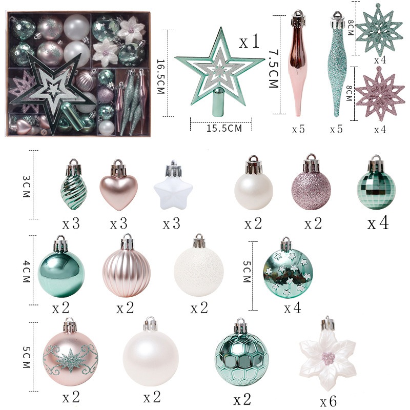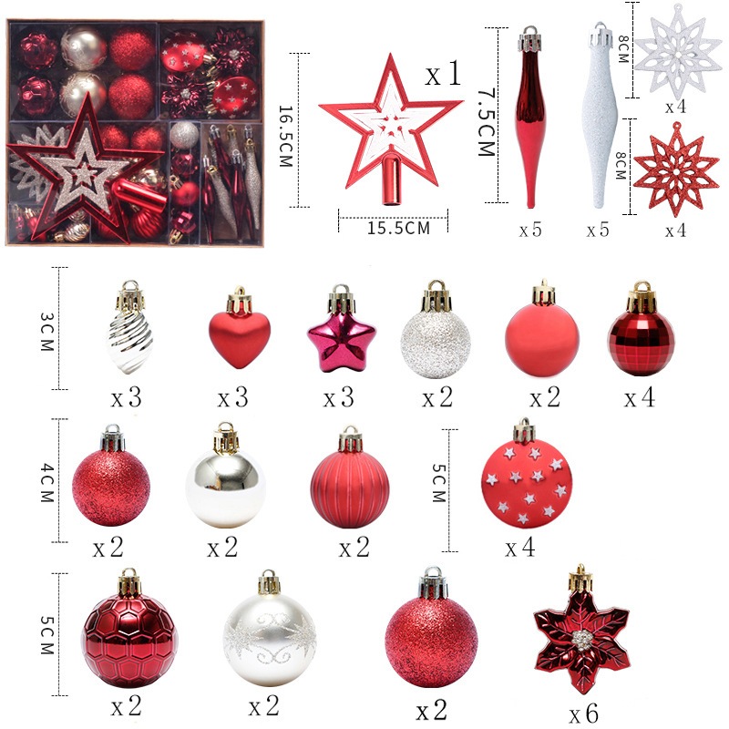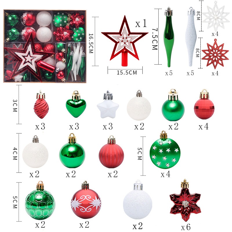国境を越えた新品 58 PCS カラークリスマスボールセットギフトバッグ クリスマスツリーストラップ クリスマスオーナメント クリスマスボール 子供のプレゼント インテリア