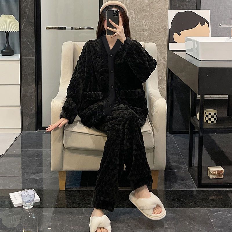 韓国ファッション裏起毛 柔らかいルームウェアパジャマ レディース セットアップ もこもこパジャマ ふんわり 肌触り シンプル部屋着 スウェット+ズボン超保温 上下セットパジャマ