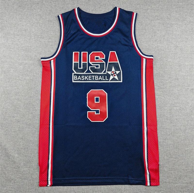 刺繍バスケジャージ ドリームチーム 9 番 レトロブルー 1992 年モデル スポーツタンクトップ 工場直販