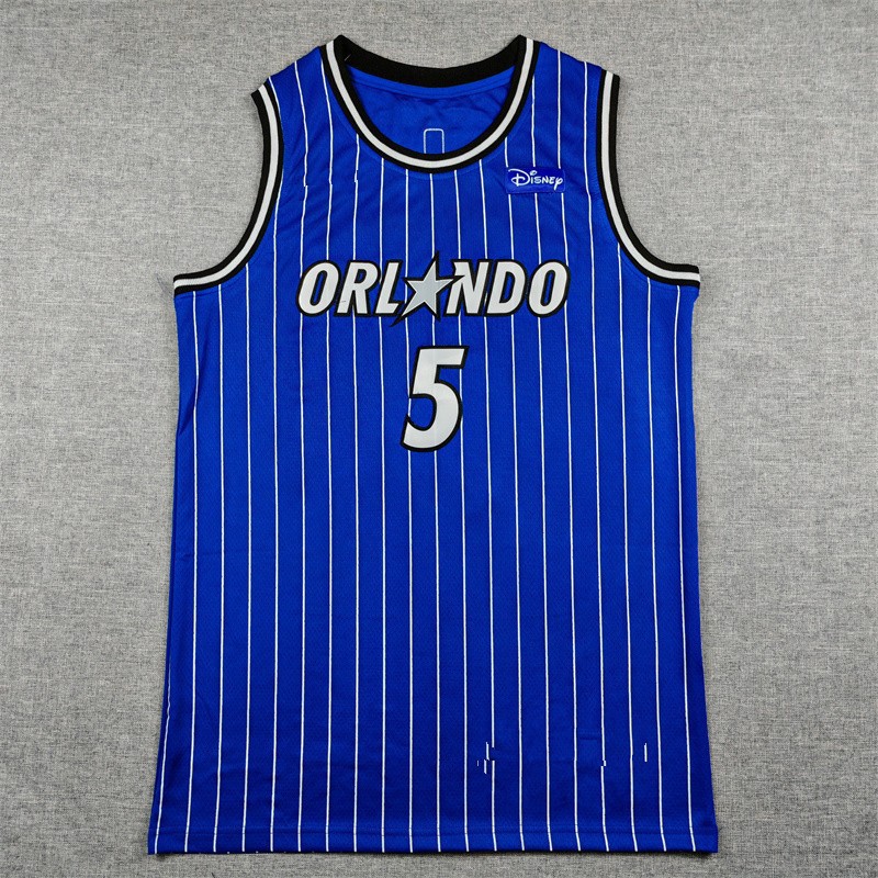 速乾刺繍バスケジャージ マジック 5 番バンチェロ ブルーストライプ 工場直販 ハイクオリティ