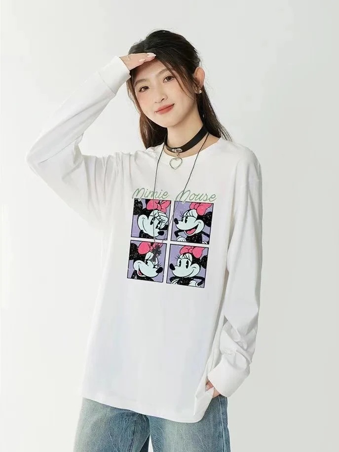 ディズニー 長袖tシャツ レディース ディズニーミッキー ミニー プリント 可愛い カジュアル ペアルック トップス 春秋 ロングtシャツ 大きいサイズ