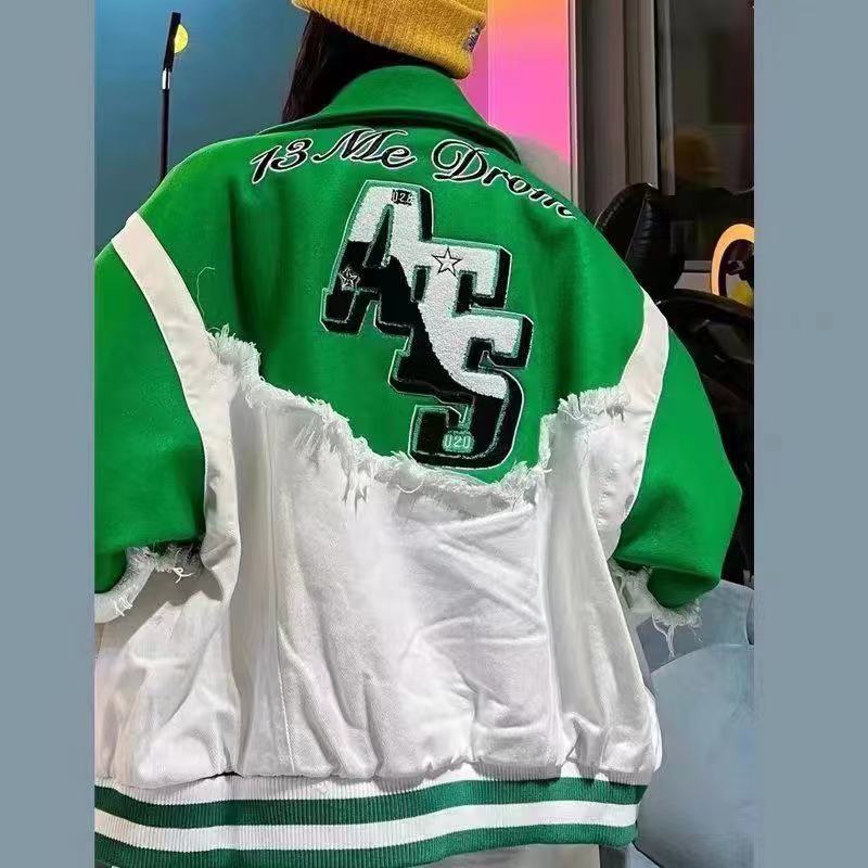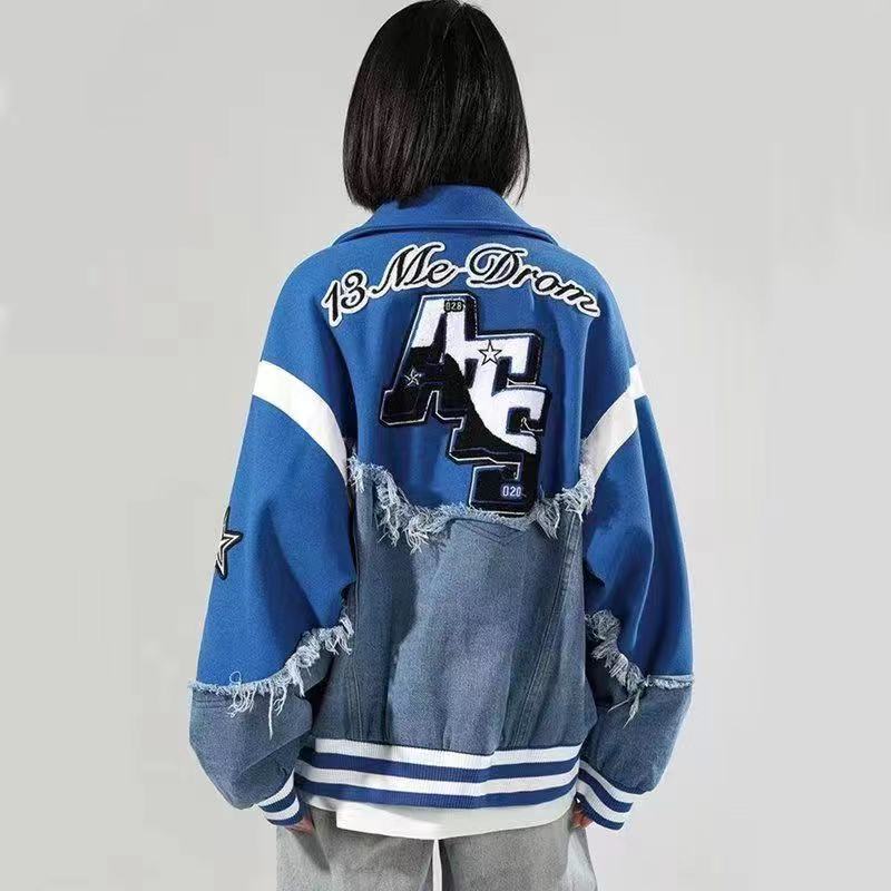 アウター レディース メンズ ジャケット 韓国ファッション スタジャン ストリート系 男女兼用 カジュアル 切り替え デニム コート 上着 原宿系 ユニセックス
