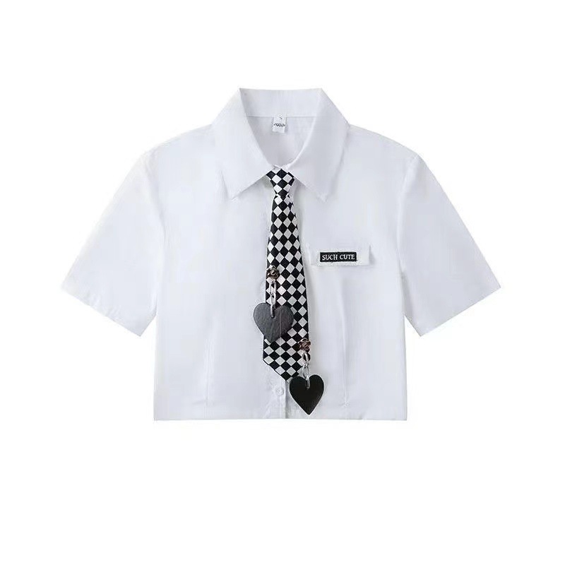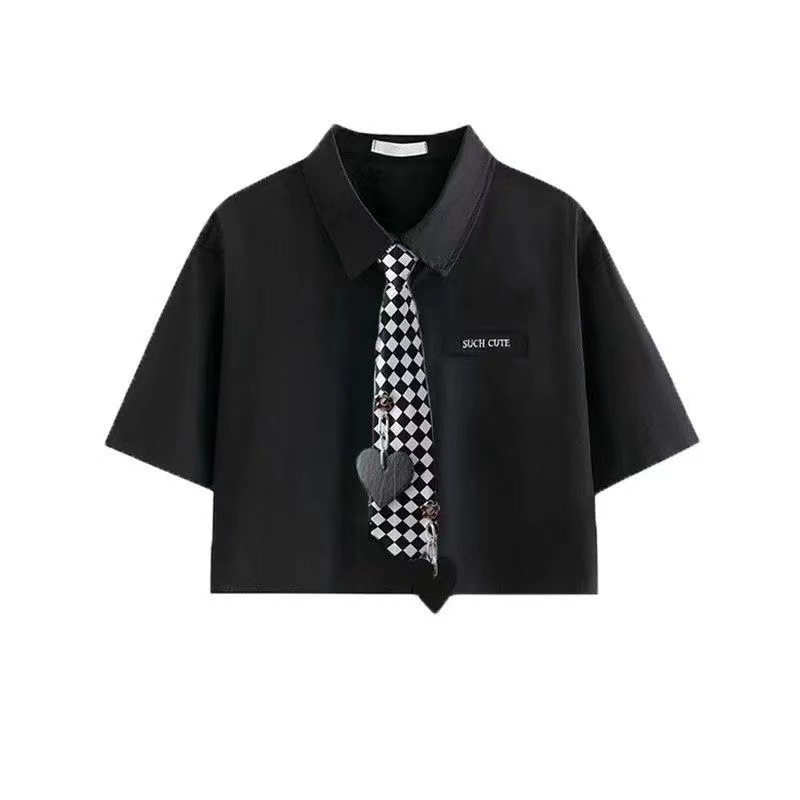 シャツ レディース ブラウス 半袖 ネクタイ付き 韓国ファッション ショート丈 トップス へそ出し 可愛い 原宿系 ダンス 衣装 カジュアルシャツ