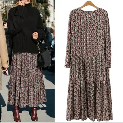 韓国ファッション ロングワンピース 大きいサイズ レディース 服 レトロワンピース かわいい ワンピース マキシワンピース 長袖 ぽっちゃり体型 コリアンファッション 花柄 ギャザー