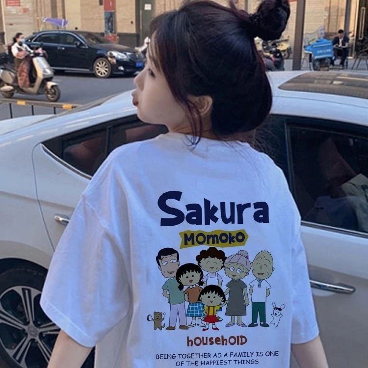 日系かわいいちびまる子ちゃん半袖tシャツ女性夏新ゆるいオーバーサイズ上着