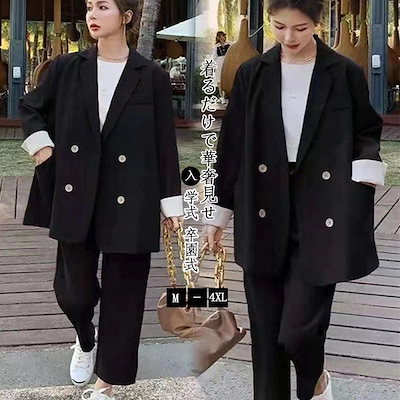 2024新作 二点セット レディース スーツセット 春アウター ブラック レディースファッション セットアップ ママスーツ 卒業式パンツスーツ スーツジャケット 入園式 入学式 卒園式30%制限