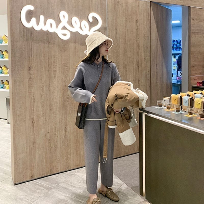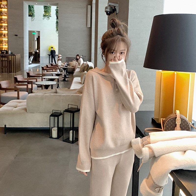 初秋セーターセットアップセーターカーディガンワイドパンツ秋冬韓国ファッション気質フード付きニットスウェットカジュアル30%制限