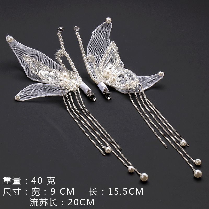 FAERIE新しいブライダル ヘッドウェア ハンドメイド パール タッセル バタフライ ペア クリップ フェアリー シンプル ウェディング ドレスとメイクアップ アクセサリー30%制限